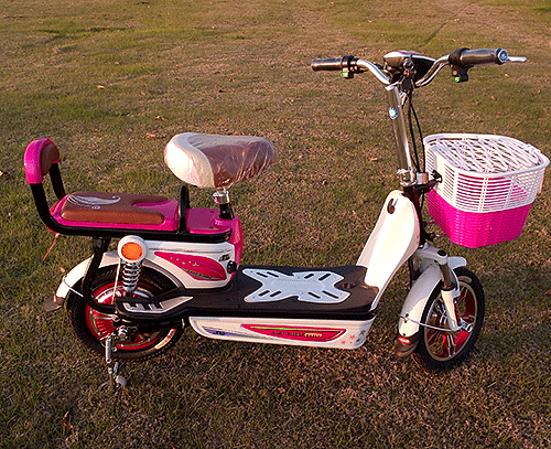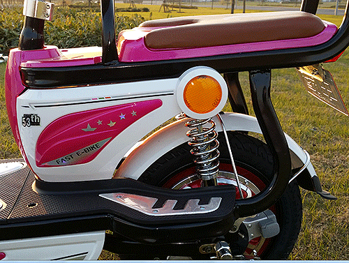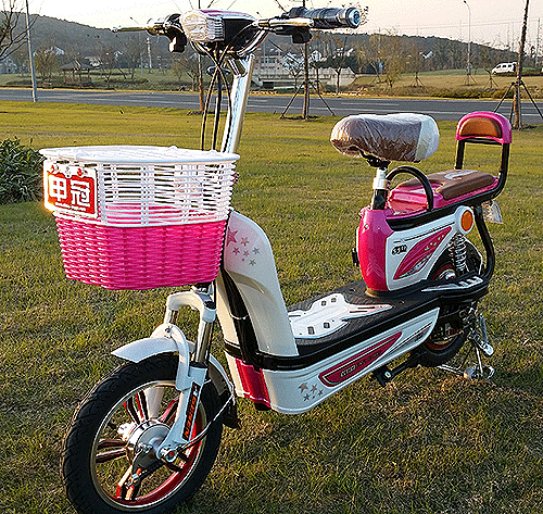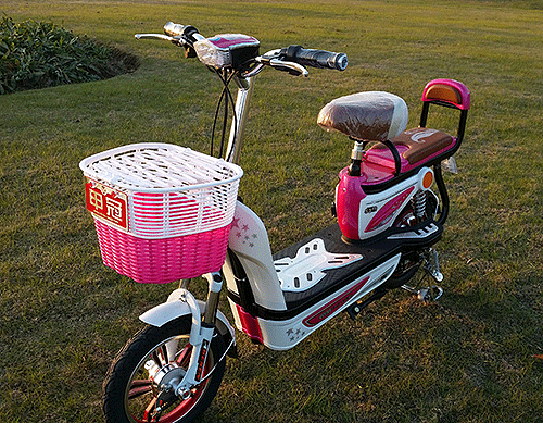 1.精品铝合金龙头、立管 2. 彩色专用塑件篮子 3.水晶LED大灯 4.仿真皮加厚优质坐垫 5.铝合金加厚轮毂 6.朝阳或者建大轮胎 7. 48V350W高效电机、9管控制器、防盗电机锁装置 8.加粗白锈钢、智能型滑行轮胎保护器+外带侧撑
