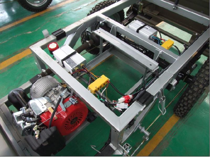 车身尺寸:1.5米X 1.0米 电机功率:48V800W/60V1200W 控制器:15管/25管/进口晶体管 轮胎:2.50-12---3.25--12 减震:35#阻尼油压双簧 座位:单排X2人 爬坡度:15度-23度带变速器